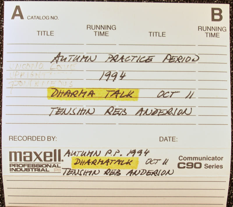 strangely enough, what I'm recommending is to practice being upright. And I'm recommending that, which is the same as to say, I'm recommending that you always work on one thing, that you just work on one thing, or that you make your work, that you appreciate that your work has one form, and that your play and your work, that your whole life has one form. The earliest name for Zen meditation was the one-form awareness, or the awareness of the uniformness of life. There's something about life,