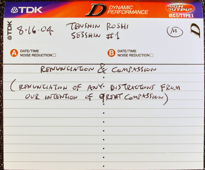 Perhaps I could say renunciation of being distracted, from this heart of compassion. Renunciation from distraction, from the wish to realize peace and harmony among all beings. Renunciation of being involved in trying to get to the highest level,