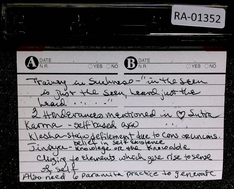 But this sense of self is the sense of self that arose from a world where there was just a cognition, a question, a cognition, a sense of self, and the sense of self is just something that was born in that, by that story I just told. Prior to that, they were just like cognitions, which were just cognitions. Smells, which were just smells. Touches, which were just touchables. That was the world that you entered through this kind of training. Now, Tassajara, I call this instruction here training in suchness or training in thusness. There's problems in that name, which I may get into a little later. Anyway, when you When that's how it is for you, that things are that way, then you won't identify with these experiences. And if you don't identify, when you don't identify yourself with the seeing or the heard or the cognition, when you don't, then you will not locate yourself therein.