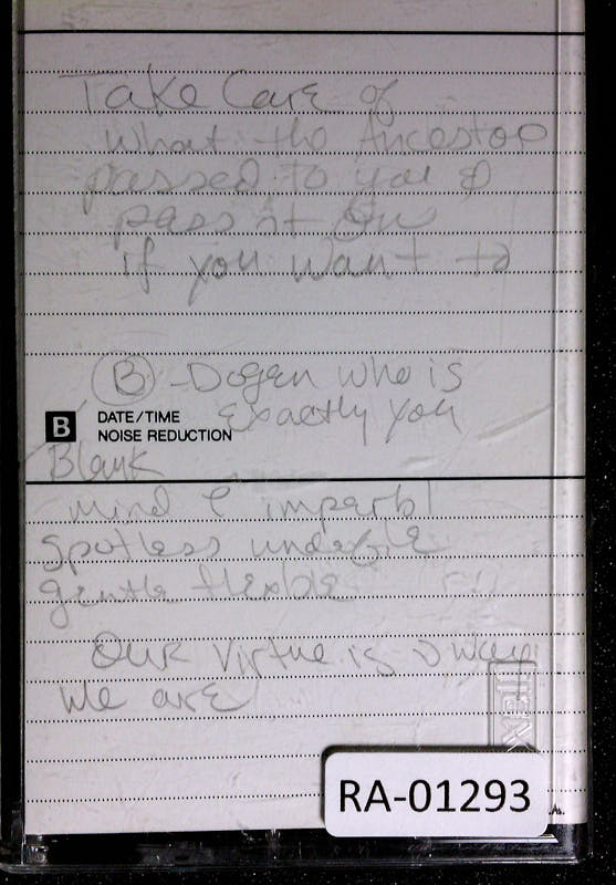 Was it something I was taking care of before I came in here? And now I tell you and I pass to you what I'm taking care of? I think so. Is it what I think my ancestors were taking care of and passed to me? That's what I think. Now you have it. And please take care of it. Take care of it and pass it on if you want to, if somebody asks for it. I pass this to you because I thought you asked for it. I wouldn't have bothered you if you didn't do those three bows and chant that thing about the pure and simple color of true practice.