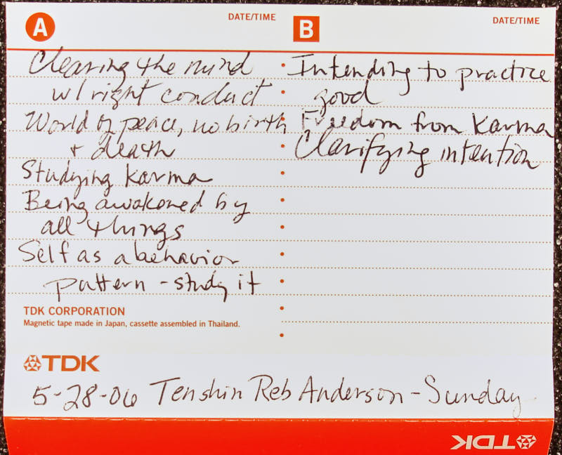 They have unstintingly studied their own actions, and the actions of others, to the end, and realized liberation. And then they come back into the world of birth and death, and send us this message, and invite us to come and play with them. But it's a hard job. However, it's available. What is it? Nice work if you can get it, and you can get it if you try. It's nice work, but it's hard work. It's partly hard because you've got to be right on the case. You can't be like generally in the area of maybe I had an intention. You've got to get right down to the intention of the moment. What am I...