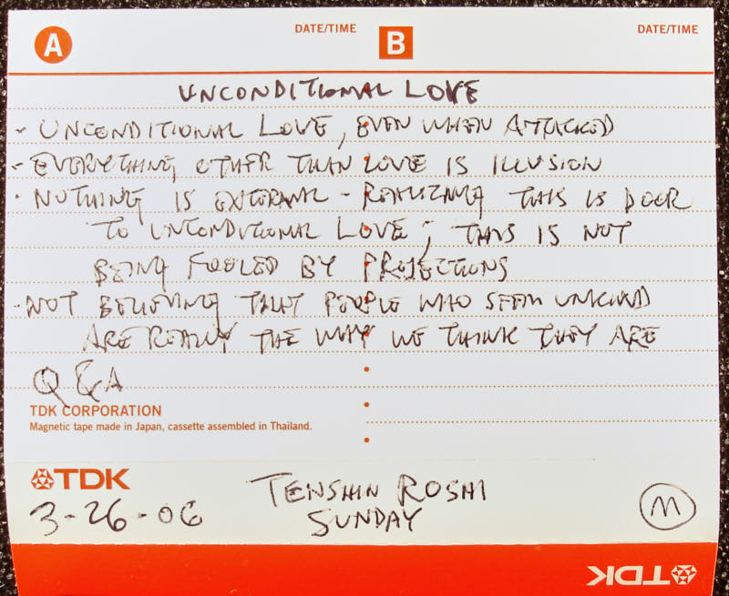 Yesterday, I was talking to someone and she said that the last time she and I talked, she had told me that her main concern in life was unconditional love, and that in that previous conversation she was intending to contemplate that aspiration, and yesterday she told me she was having a lot of trouble with that, particularly when she was feeling frustrated, when she wasn't able to, she felt she couldn't express herself, or she felt like, she felt that she wasn't getting unconditional love, so I asked her, did you mean that you wish