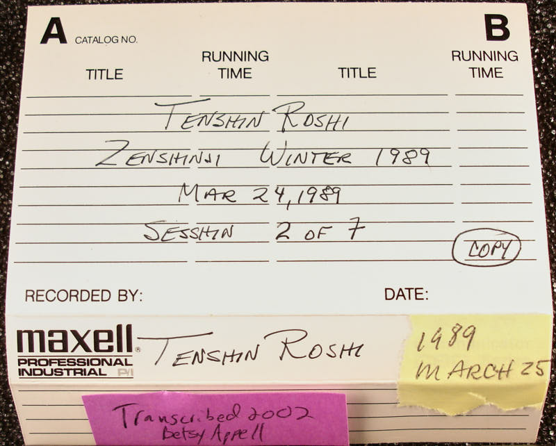 So, sometimes people need to have Doksan right away. But that's why I saw one person, I saw Shunsen, because I want, she was coming down from San Francisco, from Green Gulch, I wanted to know what she was going to work on with Sashin. That's why I asked you before Sashin to think about what you were going to work on and tell me so I'd know beforehand, so I wouldn't, so when Sashin started I wouldn't have to interrupt your sitting. And you would also know right at the beginning what you were going to do. So please trust me because maybe it takes several days for us to get settled.