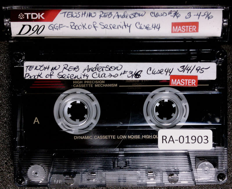 This class was advertised as having how many meetings? Six? Huh? So the way things have worked out is that there's a session scheduled in the middle of the class, sort of. Not in the middle exactly, but in the middle of the class. So the sixth meeting will be after the session. All right? Which means the sixth meeting will be in April. but there'll be a week break during which time we'll have a session which you're welcome to come to probably talk about koans there too another thing is oh I have some copies of a commentary on the Bodhisattva initiation ceremony I'd like to say something about this class, and that is that I tried to go through this book, this book of serenity, a few times.