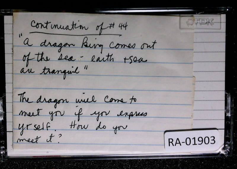 Additional text: Continuation of #44\n\A dragon being comes out of the sea - earth + sea are tranquil\\nThe dragon will come to meet you if you express yourself. How do you meet it?