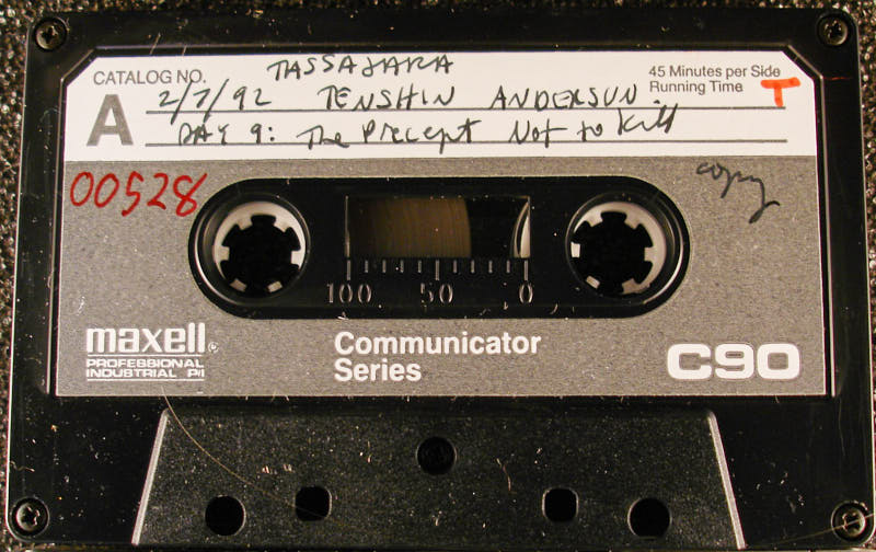 But sometimes the pain is too much. Like the woman I just told you about, you go crazy. If the pain destroys your ability to practice patience, then you’re cooked. You’re temporarily disqualified from the game. But when you see the consequences of that, you come back. Maybe somebody walks up to you and says, “Sister, regain your presence of mind.” Maybe the pain’s not so bad anymore. Maybe it’s the same. Maybe it’s worse. But anyway, you come back into it, and you say, “I’m going to work with this turnip.” Thump! “I’m going to receive the precept of life-is-not-killed. I may have to cry my way into it. I may have to slide my way, but somehow I’m going to get into this body that I’ve got. I’m going to get into this mind that I’ve got. And I’m going to use this to save myself.”