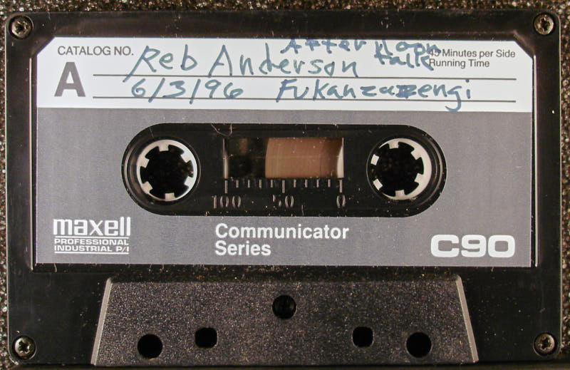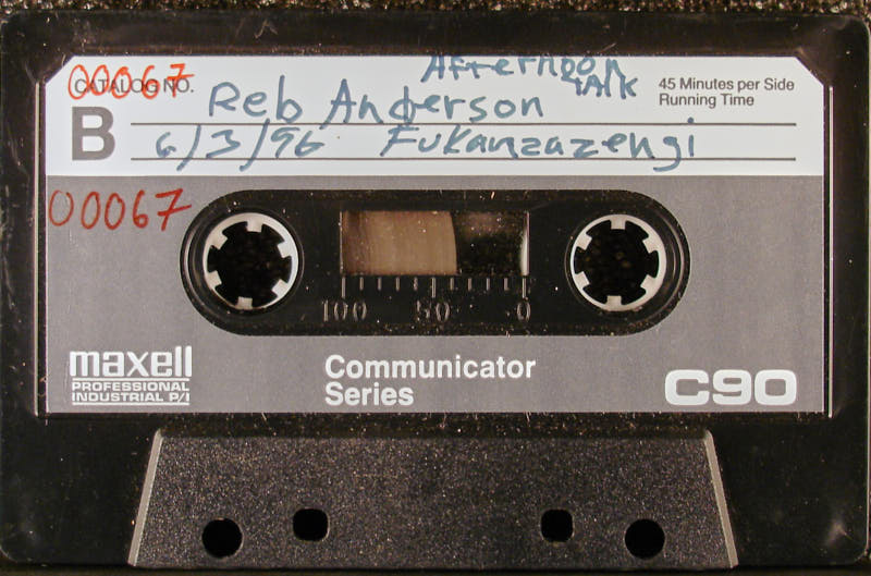 ceremony for the universal encouragement of Zazen. And as you can still hear the text echoing in your head, remember, at the end it says, �The treasure store will open of itself, and you can use it at will.� Remember that? If you practice in such a way, you are assured of being a person such as they, remember that part? In other words, if you can practice this, this Zazen practice, �Want a place to sit? Want to come up? There's a cup in the chair here.� So if you practice Zazen, or I should say, if Zazen