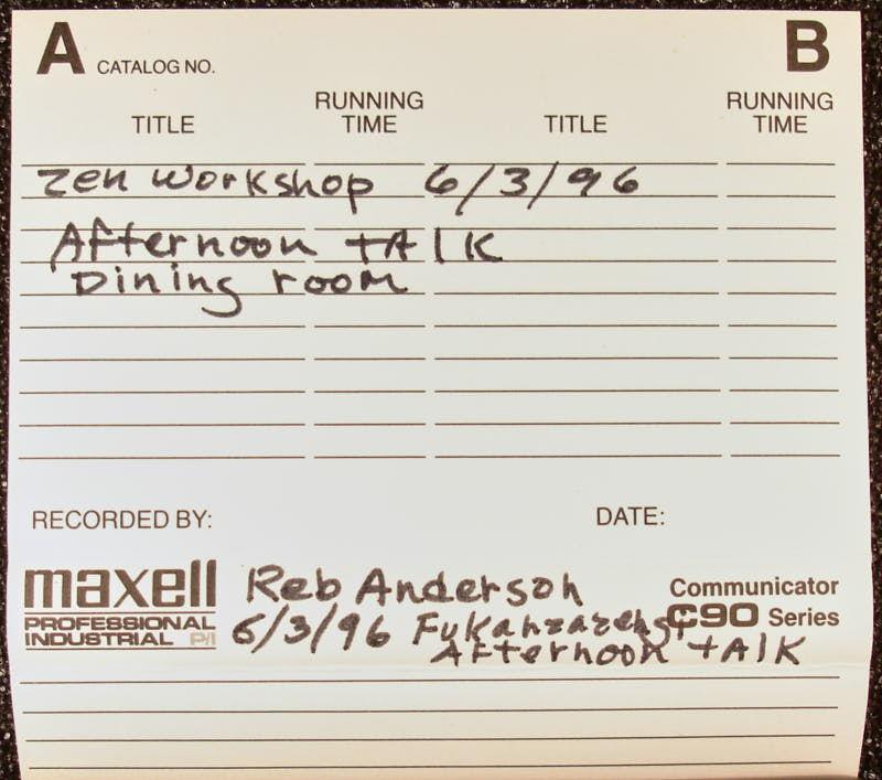 I may have missed something. I was thinking, why am I not getting this? Is this an advanced seminar? This is an advanced seminar. Sorry. It sounds kind of like a solution in search of a problem. I don't know. Can you state? Could you tell me what you mean by that? Well, Zazen not being what I do, but being what I be without what fulfills me as I... Zazen is your... Zazen is not what fulfills you. Zazen is your complete fulfillment and liberation and happiness and saving all sentient beings. That's what Zazen is. Zazen is the dominator of repose and bliss. That's what it is. You want to know what the problem is?