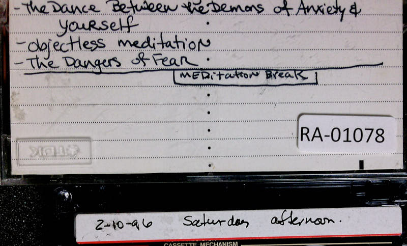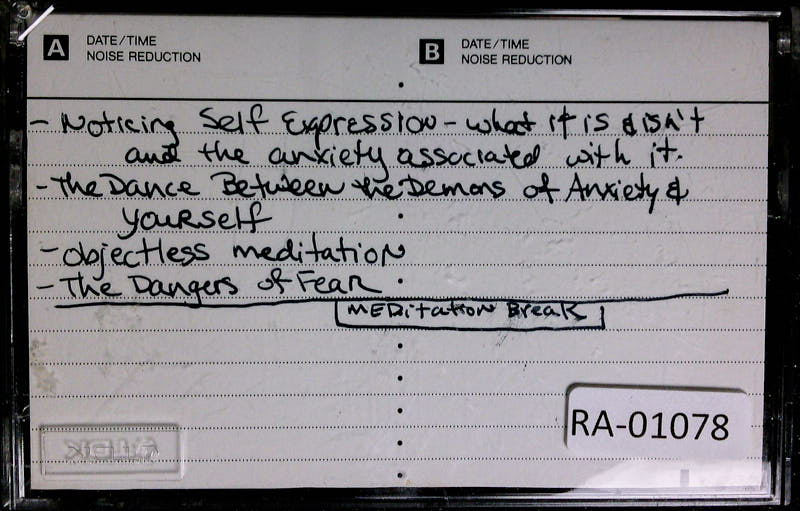 Additional text: Noticing Self Expression - what it is & isnt and the anxiety associated with it. The Dance Between the Demons of Anxiety & Yourself. Objectless meditation. The Dangers of Fear. Meditation Break.