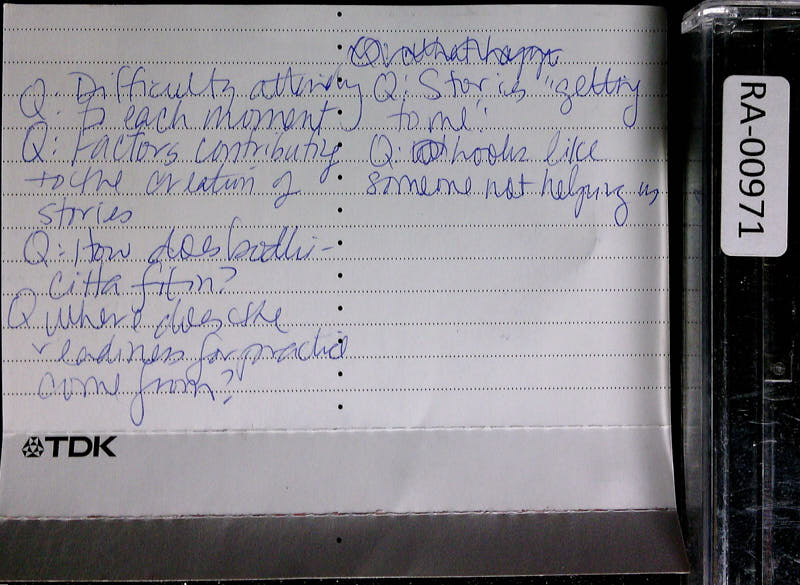 People tell me stories like that. Sometimes people tell me stories of happiness, of joy. No matter what, people are telling me stories. That's not the practice. That's the object of the practice, is to pay attention to the story. I'm in big trouble, OK? paying attention to that story that you're in big trouble. That's the practice. To be intimate with the most terrible story, to be intimate with the most lovely story, to be intimate with whatever story you've got, that intimacy, that awareness, that's the practice. That will show you eventually that no matter what story we have, stories of woe, stories of happiness, no matter what story they are, They're not actually what's going on between us and the universe. They're just an interpretation, which we can't avoid doing.