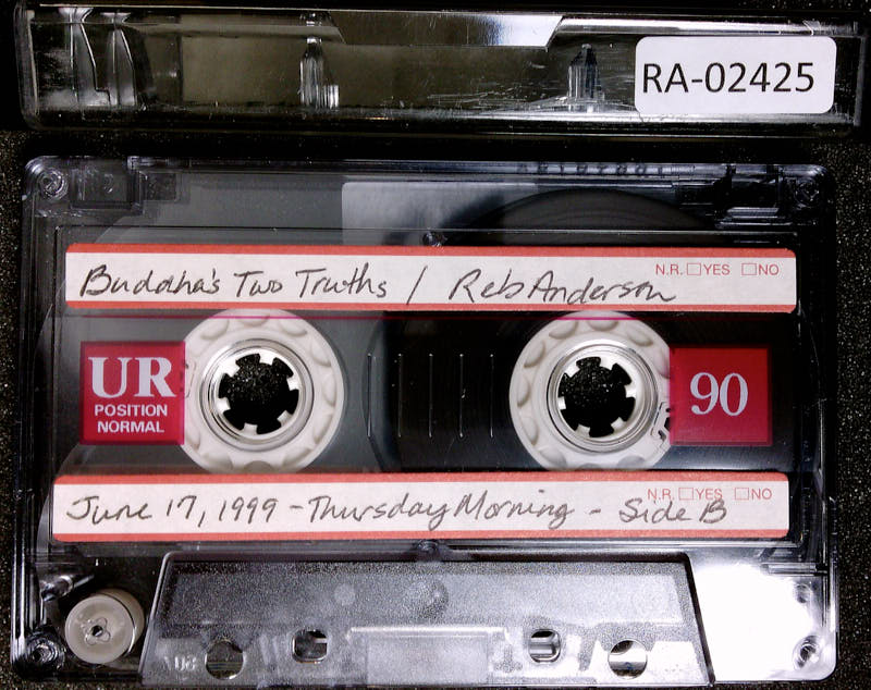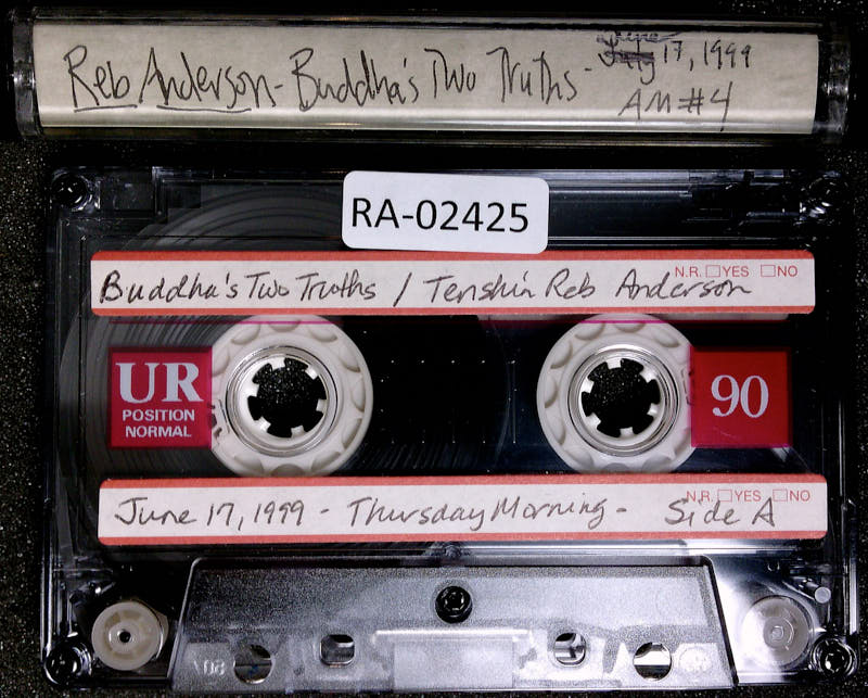 But that'll help Sharon stay awake, right? If I tell this funny thing? Yeah. Well, first of all, I'm going to tell you about it, and that'll wake you up just in anticipation. I don't tell jokes just to make you stay awake, but sometimes they do occur, and I think maybe Buddha's channeling the joke to me so that you don't go to sleep. Buddha's saying, they're getting sleepy. You've been talking about this heavy philosophy too long. It's time for a joke. Okay, and here's a joke, which is somewhat related. They're often somewhat related, and sometimes they're completely, I can find no connection. But this one is related, I think. See if you can see, after all this, how it's related. I was in a workshop at Green Gulch, and I went around introducing myself to the people beforehand. So I said, like I said, how do you do? My name's Reb. And you say, Diana. And I say, how do you do? And this person says, I say, my name's Reb Anderson.