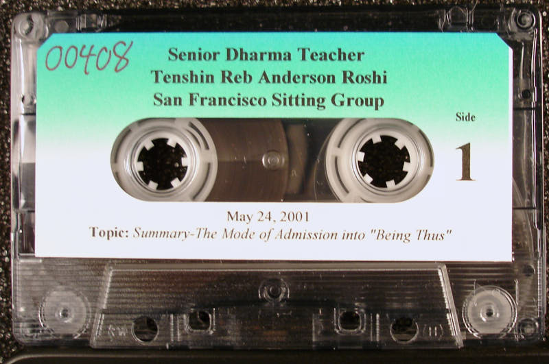 which is the mode of admission to the Buddhadharma. It's the mode of admission, or the price of admission, to Buddha's wisdom and compassion. It's the mode of admission into the creation of the world, or into the creativity of the universe, which is being thus. It's the mode of entry into the way we really are, which is the way we really are, is we are the creativity of the universe. The whole universe makes each one of us. And the practice I've been talking with you about is a way to enter that realm where you're made,