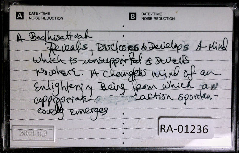 Additional text: A Bodhisattva reveals, discloses & develops a mind which is unsupported & dwells nowhere. A changeless mind of an enlightening being from which an appropriate action spontaneously emerges.