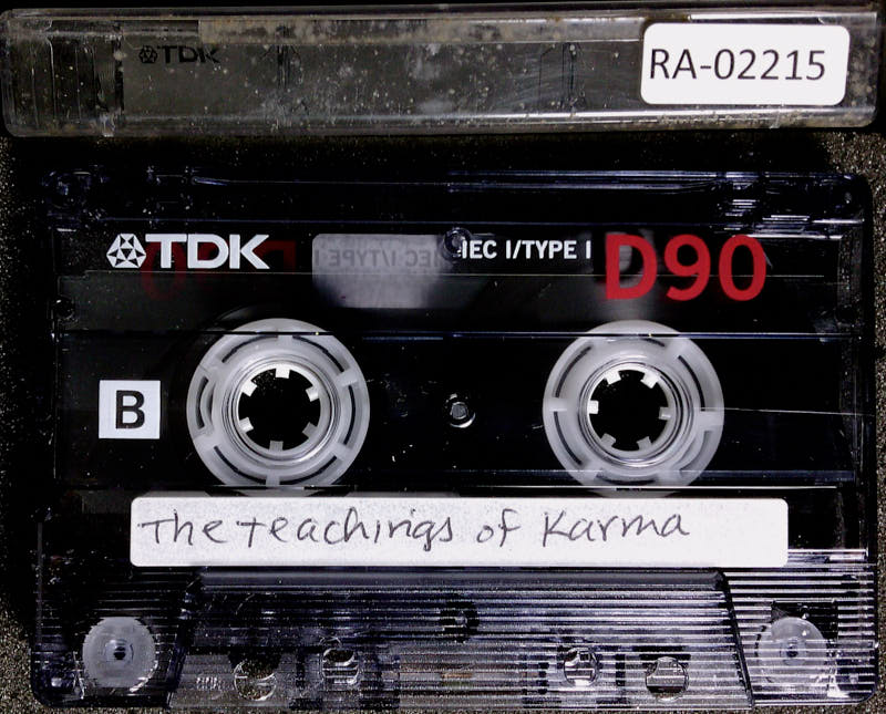 our stories about all our relationships. And as I mentioned last week, changing these patterns or these stories of our relationships with all things simultaneously changes the way all things relate to us. And last week I read a message from one of the people in the class. I read the first paragraph of the person's letter, which was that thinking that maybe intention, that karma as intention, was similar to prayer. And I think that's right. So you could also say that karma is the prayers in our mind and another word that you can use as definition of karma is thinking