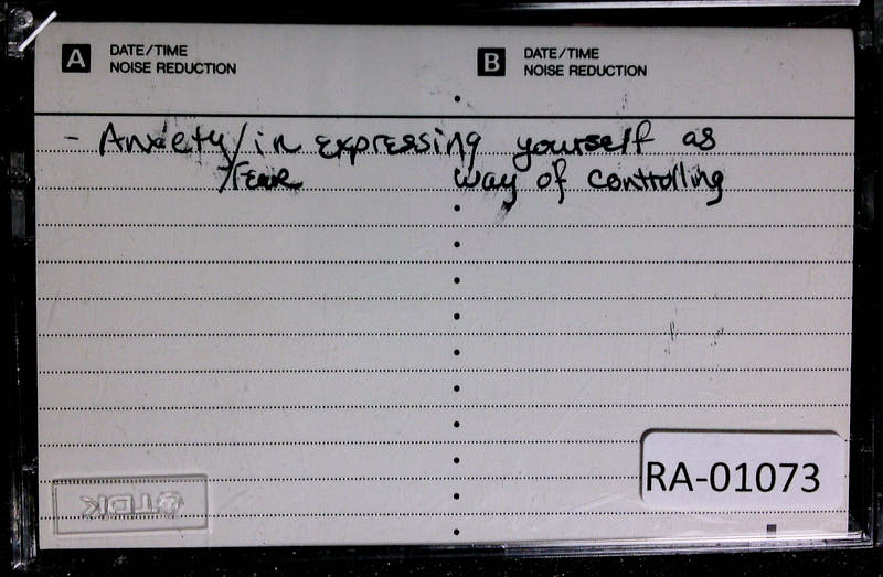 Additional Text: Tape #2, MASTER, Anxiety in expressing yourself as fear, way of controlling