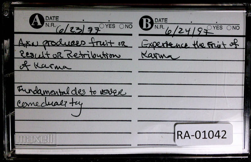 And so in a receptive state, if you try to determine the karmic value of that state, you'd have trouble determining it. You might actually possibly be sure that it would be determined. You might be sure that it was not . very clear that it didn't have tendency, and that water would not flow to pour down. And it's really just that filled space. When the mind is acting like an organ, it actually isn't active. When the mind is just certainly a function of receptivity or sensing, it's not actually the actor at that time. So, again, as I mentioned, some part of our life, our mind is in a receptive mode, and therefore there is no karma at that time.