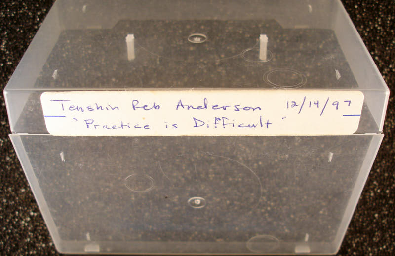 but this practice period we have another case like this. And now the practice period is getting close to the end as you may or may not have noticed. Some of you I know are practicing really sincerely have not been thinking of the future and don't know that quite a few days have already occurred in this practice period. The majority have already happened. There's only three weeks left. What so soon? And all this practice period I've been trying to send these vibrations to the jishas to ask them to not knock so hard on the door. All these little signals I've been giving them praying to Buddha that he would stop. Finally with the aid of Dogen Zenji and the encouragement of the difficulty of the ancestors I finally said