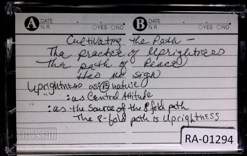 Uprightness is is the source of the Eightfold Path. In our uprightness, our uprightness is our Buddha nature. Our Buddha nature is our uprightness. When we practice uprightness, we're kind of celebrating our Buddha nature. And I said to someone, the thing about uprightness is you don't, there's no kind of like, there's no practices which are conducive to uprightness. Any practice that you would use to be upright would throw you off.