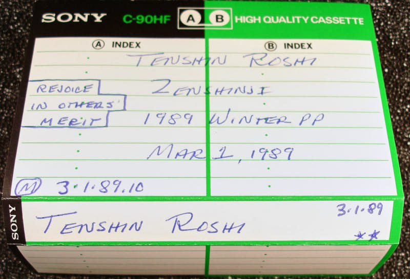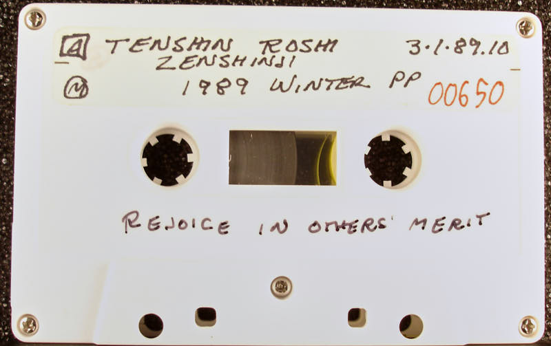 Emulate it. That's one great way of praising it. With Suzuki Roshi, my great praise of him was to try to be like him. Okay, so praise and rejoice at the merits of others. And if you see faults in people, if your eye gets off the track and you somehow can't help but see a fault, then when you see the fault, then turn, don't deny the fault, just turn around and look at yourself. Because you probably haven't been doing the previous practice of confession and repentance thoroughly. If you do that more thoroughly, then when you look back out again, you probably again will see merit and virtue rather than faults. But again, if you see faults, don't deny that you see the fault, but see that you have made fault. You're off when you see faults. So turn around, okay, and look back here, and then go back out again. And if you see the merit, then don't just see it, rejoice in it.