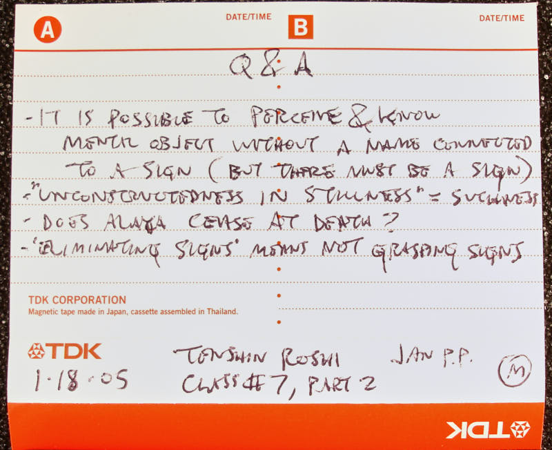 you usually use signs for your mind objects and also for sense objects. You usually do use the signs in order to perceive them. Okay? But do you know it? Usually people don't. So part of wisdom is to start to notice how you're using the signs, but when you start noticing how you're using the signs, then the signs are not going to become objects. But that's going to be part of the insight work, is to make what you don't usually notice you're using to have a perception, to actually become aware that you're using that. That's why I asked the question yesterday, can you see the signs you're using in your process of perception? You could, to some extent, but sometimes you go ahead and use them without noticing them. So then it's not really insight work, in that sense, because you're not noticing, you're not analyzing the process of perception, even though it's working on that basis. So I'm trying to open up the process of perception by noticing the signs that are connected to the names, and then that will help you notice the projection of essence.