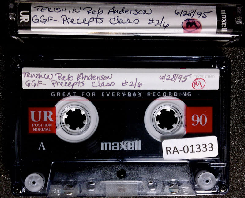This precept class is not to tell you that you should not go around trusting that you will do the right thing from now on. That's just saying, be self-righteous, please. You know, be arrogant. No, that's not what Buddhism is saying. Buddhism is saying be humble. But not humble like to think, I'm going to do the wrong thing. That's another kind of arrogance. Be humble in saying, well, I'm going to be like the Buddhas. I'm going to follow the Buddha way. I'm going to study myself and find out what I'm up to and how I work. Now, faith in the self would be faith that if you understood what the self was, you would be free. and you find out what the self was, you forget the self when you find out what it is. The self, just like the precept, is ungraspable. And the precepts come from this ungraspable self. When the self is not grasped, what your self does is called good.