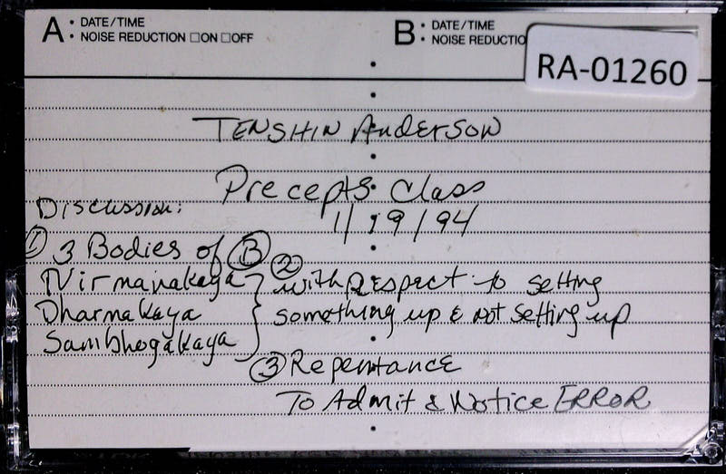 between setting up and not setting up? In other words, can there be something like, gee, I'm not setting anything up. I keep seeing myself making the error of not setting anything up. I've got to start setting some stuff up. Is that an appropriate way to practice this, or not? Time. Let's see, what is that? That is... Well, I won't say it's not... I don't want to tell you that that wasn't appropriate, but I would tell you that that's not what I mean by repentance. Repentance is, if you notice, okay, here I'm practicing the grasping way. I'm very real strict and pure. Here I am off in the mountains eating mushrooms and starting to... because I don't want to participate in the evil empire. I'm just, you know, here I am again and again being the purest. So just every day you kind of get up and say, there, I'm making that mistake again.