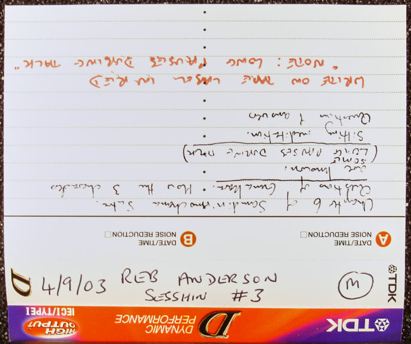 Additional text: List of names: Russ A., Grace Y. Recd. None: Laurie, A., Russ Rydholm, Ryucan.