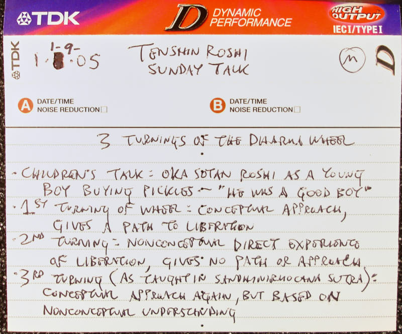 Additional text: 3 Turnings of the Dharma Wheel, Childrens Talk: Oka Sotan Roshi as a young boy buying pickles - He was a good boy, 1st Turning of Wheel: Conceptual approach gives a path to liberation, 2nd Turning: Nonconceptual direct experience of liberation, gives no path or approach, 3rd Turning as taught in Sandhinirmochan Sutra: Conceptual approach again, but based on nonconceptual understanding
