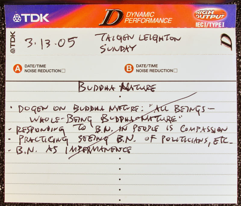 Additional text: Buddha Nature, Dogen on Buddha Nature: All Beings - Whole-Being Buddha Nature, Responding to B.N. in People is Compassion, Practicing Seeing B.N. of Politicians, etc., B.N. as Impermanence