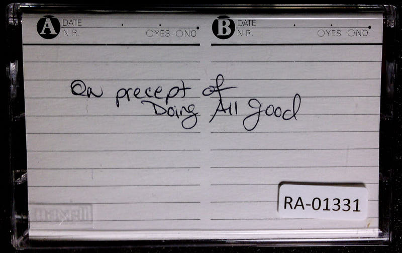 We talked about that a little bit, or actually a lot, last week. I'd like to start, which I think I said something when I was leading up to this, and that is with the idea, the principle, that if you... If you approach this first precept of avoiding evil, if you approach the precept, the teaching of the Buddha, which is to not do anything evil, that is the teaching of the Buddha. Don't do anything evil. Do not do any evil thing. All Buddhas teach that. And if you don't have that teaching, then it's not Buddhist.