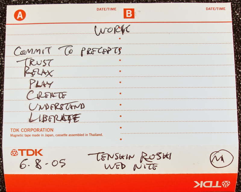 Tenshin-roshi: I’d like to talk with you tonight about work. And just offer kind of a real strong statement at the beginning; not to take for you as true, but just sort of like listen to it. And then we can discuss it, among other statements. Ahm.