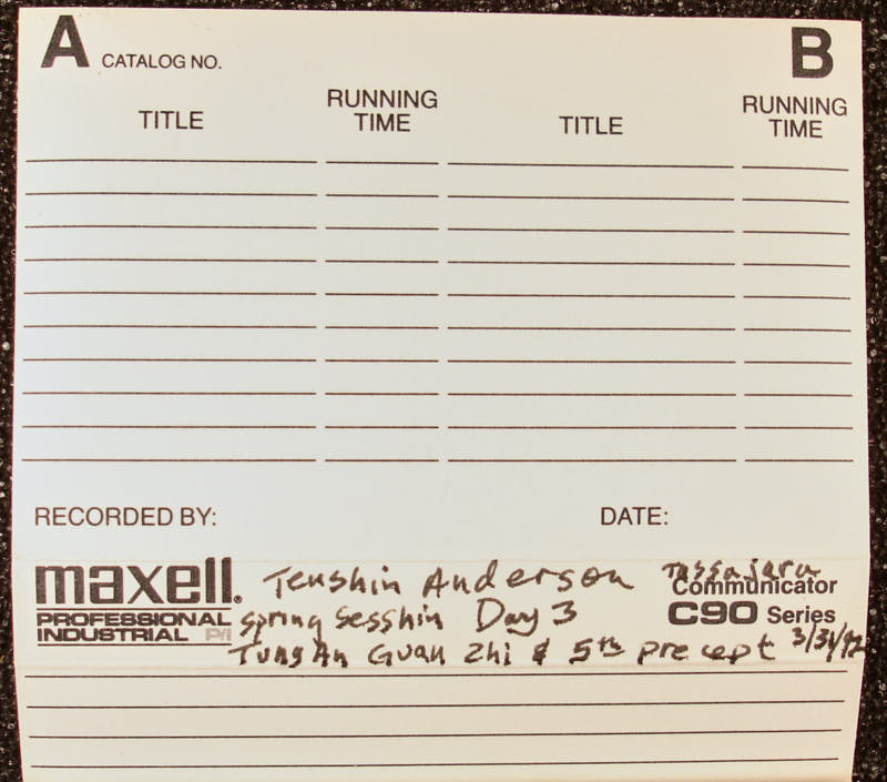 Possible Title: Spring Sesshin Day 3 - Tung An Guan Zhi & 5th Precept