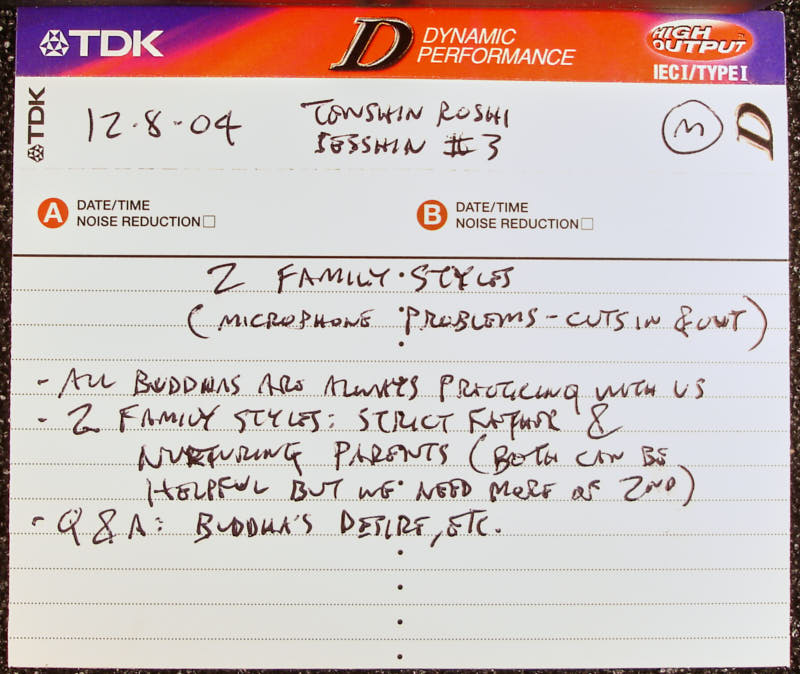 partake of them. Eheji Monastery was used, the training methods of Eheji Monastery were used during this century to train the Japanese military, and in Rinzai temples, in some Soto temples, they use a stick on the monks, especially the male monks, they use a stick a lot to help the monks not be bad, in the form of sleeping or whatever, and we used to use a stick quite a bit here at Zen Center, and we pretty much stopped, although it's making a comeback here and there. One Soto Zen teacher said, who didn't use the stick said, if people sit long enough they'll eventually wake up.