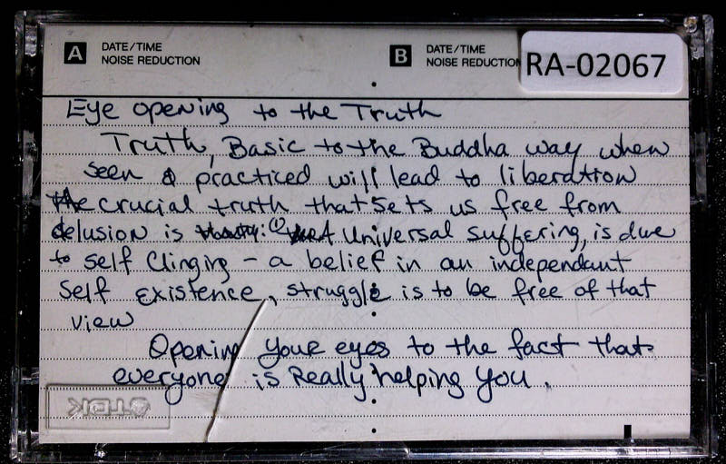 Additional text: Eye opening to the Truth: Truth, Basic to the Buddha way, when seen & practiced, will lead to liberation. The crucial truth that sets us free from delusion is that universal suffering is due to self clinging - a belief in an independent self existence. Struggle is to be free of that view. Opening your eyes to the fact that everyone is really helping you.