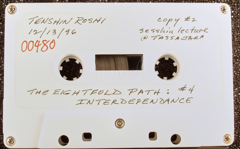 of the Eightfold Practices as Eightfold. In other words, think of each one in terms of the other seven, in addition to its own way. When you can see the interdependence of each one of these practices, each of them loses their independent special quality, loses their inherent nature. And therefore, because none of these practices have an inherent nature, they're available all the time, all of them. You can practice them all the time, all of them. One time somebody asked Suzuki Roshi, how come we have seven-day sesshis?