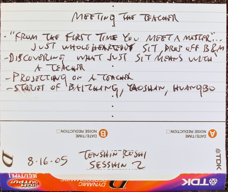 the teacher. Of course, we have ideas of the teacher, otherwise we wouldn't be able to meet the teacher. And our ideas of the teacher are based on the teacher, but they're not the teacher. Realizing this is dropping off body and mind. So, the meeting with the teacher itself is an opportunity to wholeheartedly sit and thus drop away body and mind. It's part of wholeheartedly sitting and dropping off body and mind, is to go and meet the teacher, who is your idea of the teacher, and then also meet the teacher who is far beyond your idea of the teacher. Meet that teacher, too. Of course, that teacher is the most important