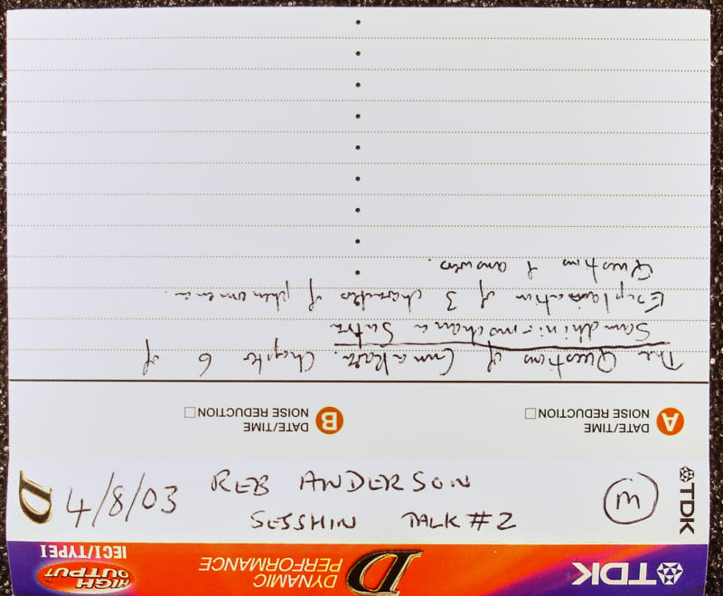 that there's actually a talk, the talk's right there and that's where the self of the talk is and it's a bore. If you think that, then you might get, you might hate the talk and try to hurt the talker, which would be, you know, very painful for one and all or for some and all. But if you understand that even though you say lousy lunch for some reason, that that thing happens, that that makes the other dependent character, that shows you the other dependent character of the lunch and the lunch turns into a deflected phenomena, then suddenly lunch becomes an affliction because you actually adhere to the lunch as being a lousy lunch. And same with a good lunch. If it's a good lunch, you know, then you can get greedy or you might get very angry if someone tried to take your lunch. I went to,