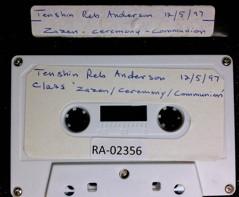 And the other side, another side of the ceremony is one time when, just before Maizumi Roshi died, he was a green vulture and he gave a talk And he mentioned an etymology for the word ceremony, which I haven't been able to actually verify, but he said, somebody probably told him, that part of the etymology for the word ceremony is to heal. And I think, whether it's etymologically founded or not, I think it's true that ceremony heals the rift between the person and meaning. But another way that I think that Zazen practice heals or provides a healing environment is the ceremony provides a container, I feel. A container in which as you sit in a container of the practice, you develop tolerance or patience.