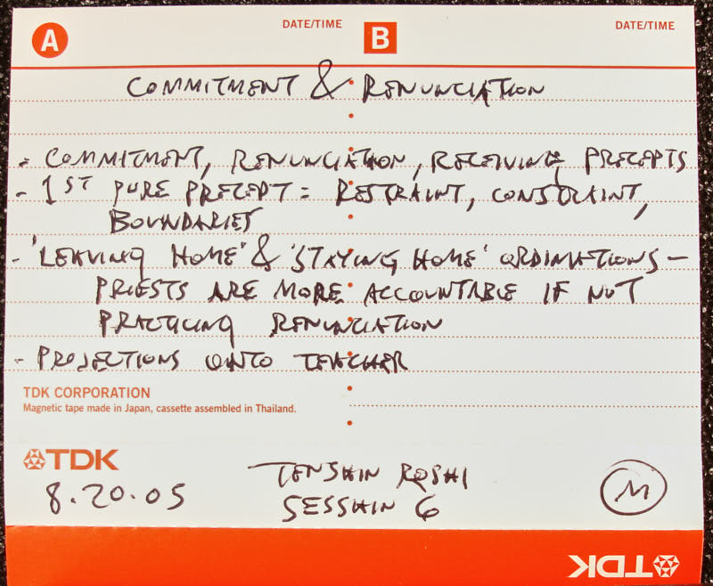 And the people going through the ceremony also might be thinking, Am I really practicing renunciation? Am I a phony? Is this head-shaving hypocrisy? Kind of difficult questions might arise around such ceremonies. So anyway, this is kind of the background, I feel pressure to keep talking about this, and give another perspective on this whole process of the Buddha way. This is one another perspective, there's lots of different ways of looking at it, but so today the perspective I offer is that this so-called Zen school offers a bilateral commitment to renunciation,