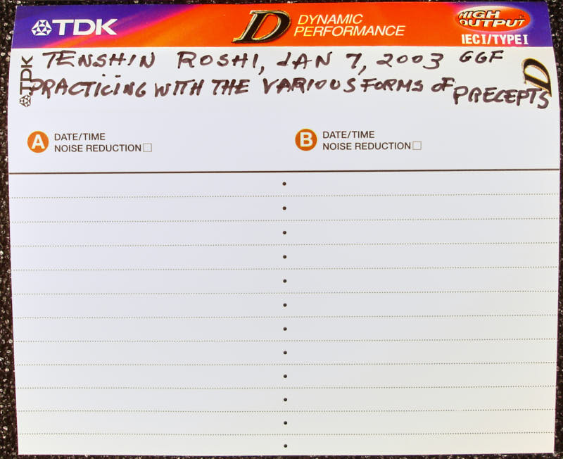 Right here in the Zen monastery. And we got through it. Very nicely. And maybe, I don't know, maybe some people were like, not violating the Vinaya precepts, not restricted by them, not violating the Bodhisattva precepts, not restricted by them. That's really what it means to practice together. And it's not just we're all practicing together. That's true, we're practicing together, but how about these precepts? Oh, wow! And when you... It's not that you weren't practicing together, but you didn't appreciate how much you were practicing together until you look at these. They amplify the workings of the process. There are certain regulations which make you consider things that you wouldn't even think of. Do you know what I mean? Say that again, please. Which, until you hear them, you don't even consider certain things.
