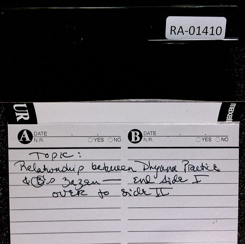 What do you think? You want to just discuss this non-thinking now for a while before we get into that? How many people would like to open up this other issue now? How many people would like to wait? It's kind of 50-50. Huh? Huh? Well, I could talk about this relationship between the zazen that Dogen Zenji teaches. The zazen Dogen Zenji teaches, he says, in his later years anyway, he said, the zazen I'm teaching is not dhyana. But in his earlier teachings, he was recommending dhyana. And a lot of Zen teachers, it looks like, are recommending dhyana. So in the school called Zen, or in the Zen lineages, there is some confusion about the jhana practice in the relationship to the meditation of the Buddha.